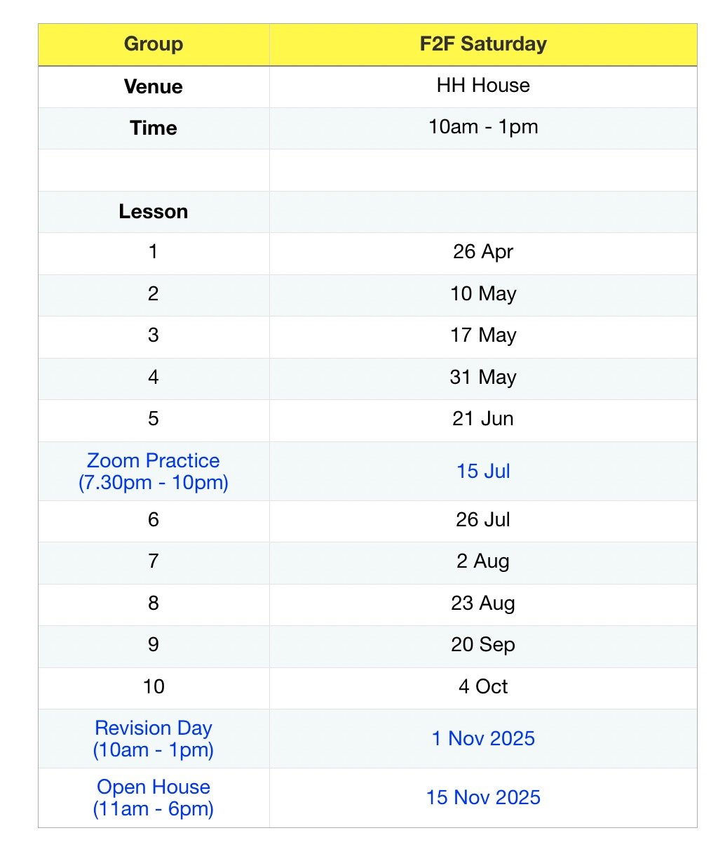 If you can’t attend any of the lessons under the group you have signed up for, we may arrange a make-up class or change class dates where possible.